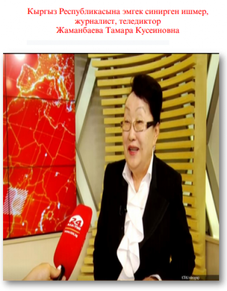 Кыргыз Республикасына эмгек синирген ишмер, журналист, теледиктор Жаманбаева Тамара Кусеиновна