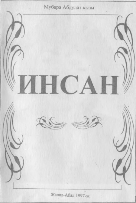 Шейшемби, 17 Март 2020 12:53 Инсан Кошумча маалымат Ысым: Инсан Жазуучу: Абдулат кызы Мубара Түзүү жыл: 1997 Документ түрү: Китептер Жөнөтүүчү: Жалал-Абад областтык китепканасы Окуу 929 раз Другие материалы в этой категории: « Кипи канти адашты Кунназар баатыр » Тепкич менен жогору