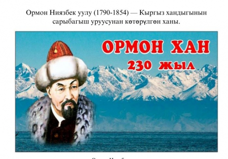 - Ысым: Ормон Ниязбек уулу (1790-1854) – Кыргыз хандыгынын сарыбагыш уруусунан көтөрүлгөн ханы.