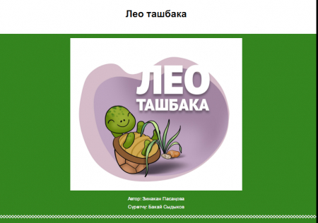 Вторник, 27 июня 2023 13:36 Лео ташбака Дополнительная информация Название: Лео ташбака Автор: Пасаңова З Год издания: 2023 Тип документа: Книги Представлено: Республиканская библиотека для детей и юношества им. К. Баялинова Прочитано 585 раз Другие материалы в этой категории: « Мырза көгүчкөн Саякатчы Көлчүк » Наверх