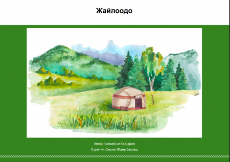 Среда, 19 июля 2023 14:00 Жайлоодо Дополнительная информация Название: Жайлоодо Автор: Кадыров Ы. Год издания: 2021 Тип документа: Книги Представлено: Республиканская библиотека для детей и юношества им. К. Баялинова Прочитано 556 раз Другие материалы в этой категории: « П тамгасы Кофенин таржымалы » Наверх
