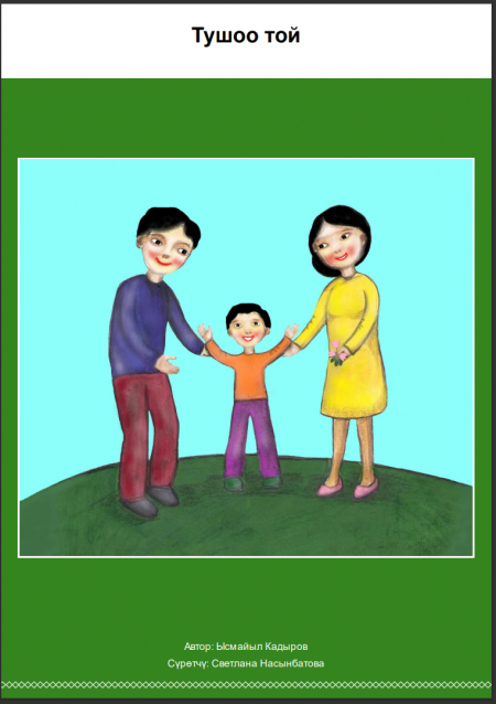 Четверг, 20 июля 2023 12:52 Тушоо той Дополнительная информация Название: Тушоо той Автор: Кадыров Ы. Год издания: 2023 Тип документа: Книги Представлено: Республиканская библиотека для детей и юношества им. К. Баялинова Прочитано 647 раз Другие материалы в этой категории: « Жакшы иш Элүү сом » Наверх
