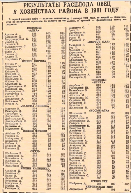- Название: Результаты расплода овец в хозяйствах района в 1981 году