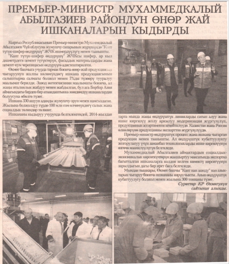 - Название: Премьер-министр Мухаммедкалый Абылгазиев райондун өнөр жай ишканаларын кыдырды
