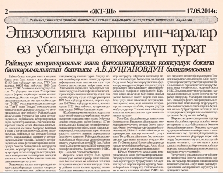 - Название: Эпизоотияга каршы иш-чаралар өз убагында өткөрүлүп турат