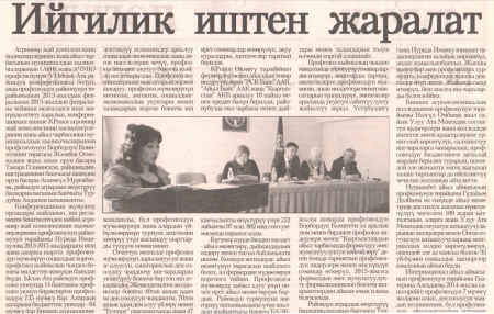 Среда, 31 марта 2021 13:10 Ийгилик иштен жаралат Дополнительная информация Название: Ийгилик иштен жаралат Автор: Жениш Туусу Год издания: 2019 Тип документа: Газеты Представлено: Чуйская областная библиотека Прочитано 753 раз Другие материалы в этой категории: « В добрый путь, "Аталык Агросервис"! Своевременный ремонт и ранневесенний полив-гарантия успеха » Наверх