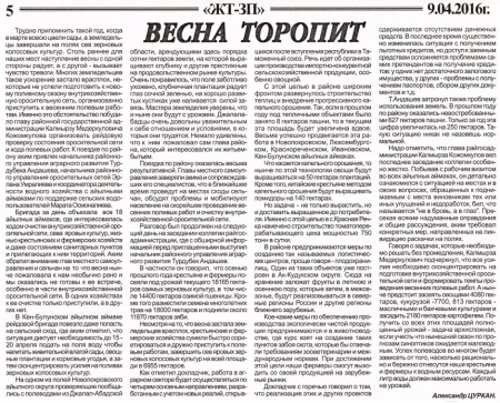 Пятница, 02 апреля 2021 10:58 Весна торопит Дополнительная информация Название: Весна торопит Автор: Жениш Туусу Год издания: 2016 Тип документа: Газеты Представлено: Чуйская областная библиотека Прочитано 734 раз Другие материалы в этой категории: « Төрт бурчтуу өлкө Главное сохранить и приумножать накопленное! » Наверх