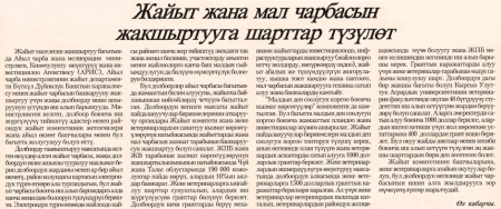 Пятница, 02 апреля 2021 11:05 Жайыт жана мал чарбасын Дополнительная информация Название: Жайыт жана мал чарбасын Автор: Жениш Туусу Год издания: 2017 Тип документа: Газеты Представлено: Чуйская областная библиотека Прочитано 756 раз Другие материалы в этой категории: « Главное сохранить и приумножать накопленное! Кылкадуу дан-эгиндерин жыйноо кызуу башталды » Наверх