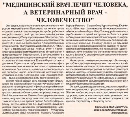 "Медицинский врач лечит человека, а ветеринарный врач-человечество"