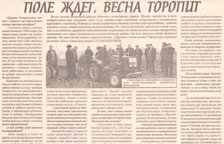 Пятница, 02 апреля 2021 14:01 Поле ждет, весна торопит Дополнительная информация Название: Поле ждет, весна торопит Автор: Жениш Туусу Год издания: 2017 Тип документа: Газеты Представлено: Чуйская областная библиотека Прочитано 800 раз Другие материалы в этой категории: « Содружество "Ак-Булак" Страда: действо не только физическое » Наверх
